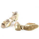 А тепер перейдемо до дуже важливої частини танцювального образу - взуття. Дитяче взуття виготовляють за стандартами ортопедії, щоб тренуватися було легко і ніжки не втомлювалися, а також для правильного формування постави в подальшому. Як правило, туфлі для дітей з невисокими підборами, в такому взутті навантаження на ніжку розподіляється рівномірно.